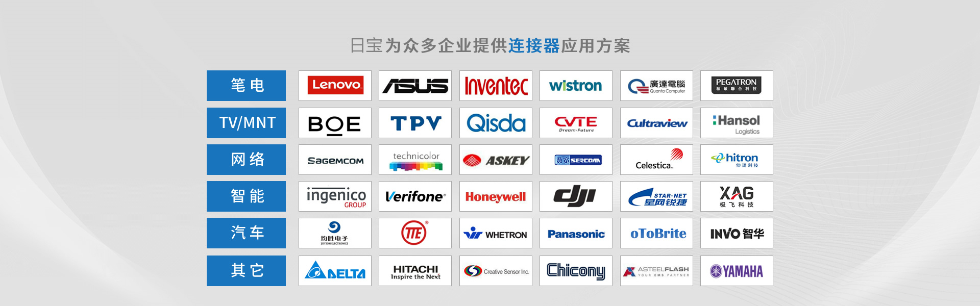 深圳市日寶電子科技有限公司創(chuàng)立于2015年,總部位于蘇州吳江區(qū),總部公司成立于2005年,是一家專業(yè)從事精密連接器設(shè)計(jì)、制造及銷售的高新科技企業(yè)。產(chǎn)品廣泛應(yīng)用于消費(fèi)電子、汽車(chē)電子、網(wǎng)絡(luò)通訊及工業(yè)電子設(shè)備、軍工、航天航空、醫(yī)療器械等領(lǐng)域。目前公司產(chǎn)品除本土市場(chǎng)外,更遠(yuǎn)銷歐、美、日等海外市場(chǎng)。 日寶電子注重長(zhǎng)遠(yuǎn)發(fā)展,先后取得ISO9001/14001質(zhì)量與環(huán)境管理體系、IATF16949汽車(chē)質(zhì)量管理體系、ISO13485醫(yī)療器械質(zhì)量管理體系、UL,GB/T29490知識(shí)產(chǎn)權(quán)管理體系等認(rèn)證, 并加入HDMI、USB等協(xié)會(huì)。 為提升企業(yè)核心競(jìng)爭(zhēng)力,公司大力推進(jìn)信息化與工業(yè)化的兩化融合建設(shè),先后導(dǎo)入ERP、PLM、CRM、SRM、MES及OA等系統(tǒng)管理軟件,不斷自我提升,為打造新一代智能制造標(biāo)桿企業(yè)不懈努力。 日寶電子擁有業(yè)界專業(yè)的電氣與機(jī)構(gòu)研發(fā)技術(shù)團(tuán)隊(duì),相繼獲得260余項(xiàng)發(fā)明和實(shí)用新型專利,在這日新月異的科技時(shí)代,堅(jiān)持以技術(shù)創(chuàng)新為導(dǎo)向,深度服務(wù)客戶...